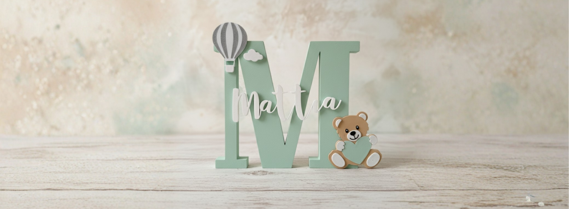 Ogni dettaglio è curato con attenzione per integrarsi perfettamente alla lettera: una soluzione ideale per camerette, regali di nascita o battesimo, e per aggiungere un tocco che faccia sorridere ogni giorno.