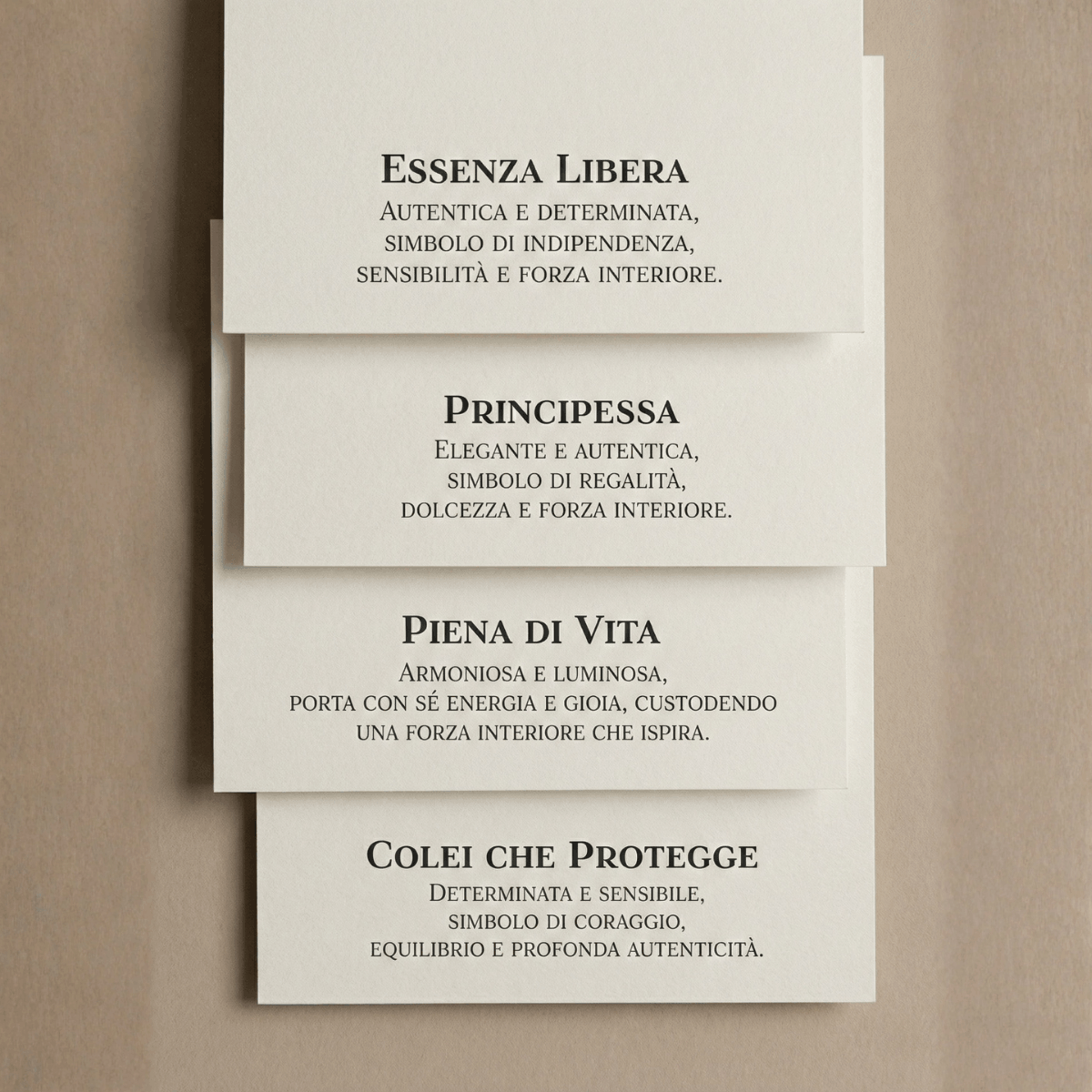 Non è una frase generica, ma un messaggio che parla di identità, forza, sensibilità ed emozioni reali. Pensiamo e scriviamo ogni significato facendo attente e precise ricerche nelle lingue di origine di ogni nome.